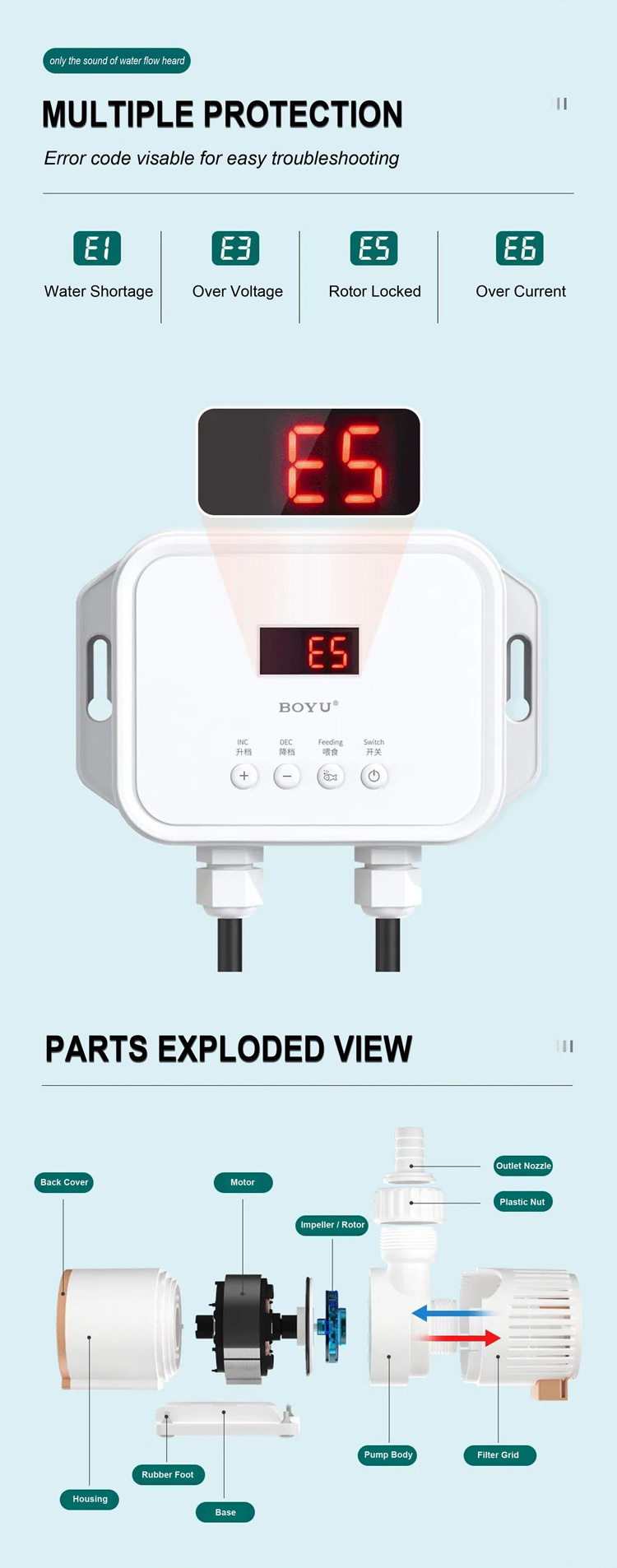• Water flow adjustable. Suitable for different demand.