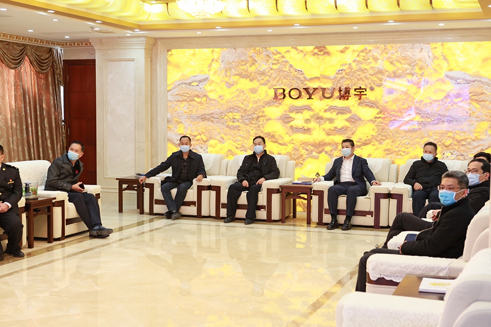 2021年1月13日,潮州市委副書記、市長(zhǎng)何曉軍帶隊(duì)在市、縣有關(guān)領(lǐng)導(dǎo)陪同下到博宇集團(tuán)調(diào)研。集團(tuán)董事長(zhǎng)余炳炎、總經(jīng)理余建勤及公司相關(guān)高管等熱情接待、陪同。