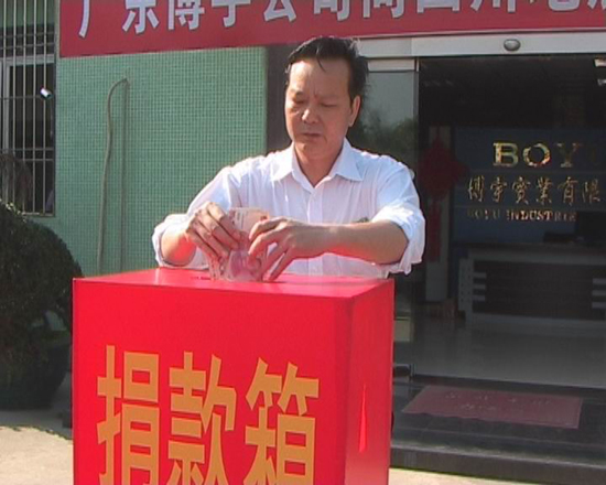 在公司舉行的捐款活動中,全體員工踴躍捐款,紛紛以實際行動對四川災區表達了愛心。除了公司全體員工的踴躍捐款外,公司董事長余炳炎、總經理余建勤還以公司的名義另向災區捐款,并表示這只是公司對災區人民所表達的首份愛心,接下來仍會關注災情,在必要時,再進行捐款捐物等活動,以同一大家庭的手足之情與企業家的高度社會責任感為災區人民奉獻愛心。并祝福災區人民早日重建家園!同時呼吁社會各界人士、各合作伙伴向四川災區伸出援助之手,及時向當地紅十字會或慈善機構踴躍捐款捐物。