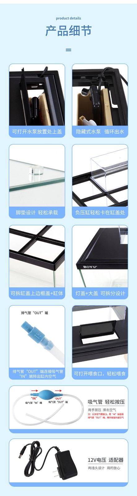 • 玻璃缸體,使用壽命長,觀看效果真實