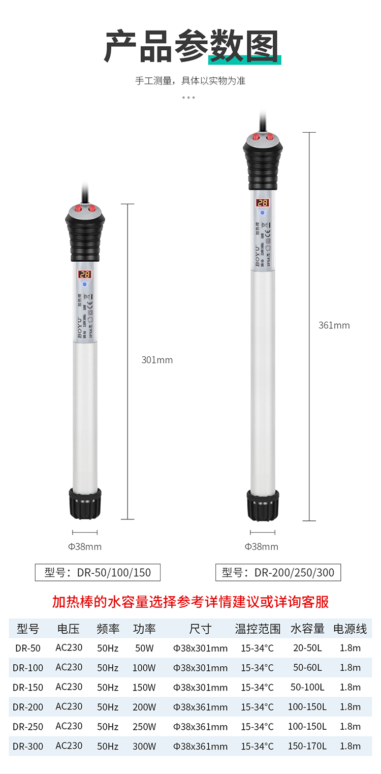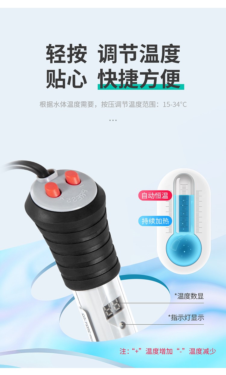 • 加熱棒采用防爆耐熱玻璃管,具有溫度計(jì)與加溫器的功能,安全性高,發(fā)熱速度快等特點(diǎn)。